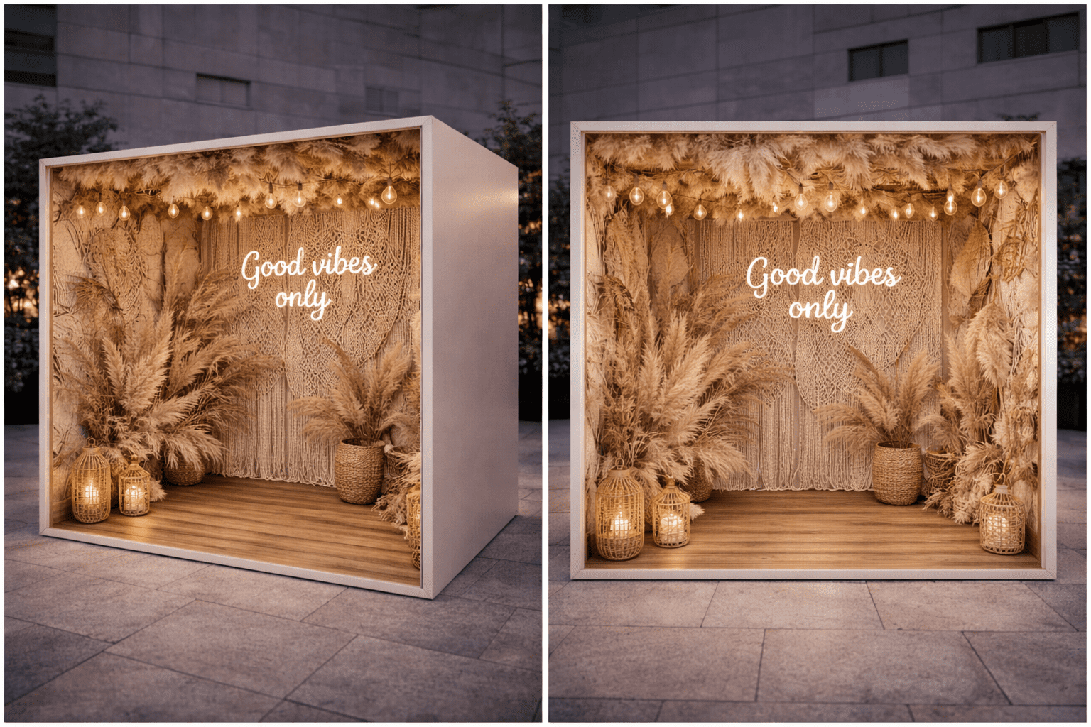 Naturalna, swobodna przestrzeń inspirowana stylem boho, z wykorzystaniem traw i ciepłych, ziemistych tonów. Idealnie sprawdza się na eventach plenerowych i markach, które chcą podkreślić naturalność i autentyczność.
